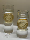 İkili Kristal İthal Mumluk Set - Şeffaf Bal Küreli