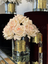 Islak Dokulu Gül 14'lü Somon - Şeffaf Vazo