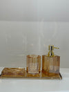 Banyonuzda lüks ve ışıltılı bir dokunuş arıyorsanız, bal renk detaylı bu ithal kristal banyo seti tam size göre! Bal renk tonlarının zarafetiyle tasarlanan bu 4 parçalı set şık tepsisiyle hem kullanışlı hem de dekoratif. Işıkla buluştuğunda parlayan kristal kesimiyle banyonuzda adeta bir mücevher etkisi yaratır.