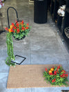 Setimiz; yapay çiçek tanzimli kıl paspas 80*45cm ölçüsü ve takım yapay çiçekler ile hazırlanmış siyah yer vazosundan oluşmaktadır.
