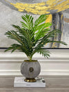 60cm yapay bitkili cam vazomuz aslan arma detaylı ve eskitme ayak detaylıdır.