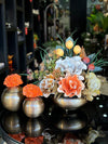 Yapay Çiçekli Antik Yassı Vazo 3 Parça Set No:13
