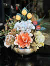 Yapay Çiçekli Antik Yassı Vazo No:13