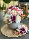 Yapay Çiçekli Cam Vazo Ve Supla Set No:1