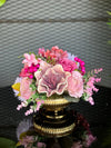 Yapay Çiçekli Gold Çizgili Vazo No:4