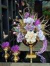Yapay Çiçekli Gold Kare Ayak Vazo 3 Parça Set No:21