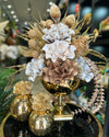 Yapay Çiçekli Gold Kare Ayak Vazo 3 Parça Set No:4