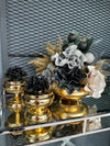 Yapay Çiçekli Gold Yassı Vazo 3 Parça Set No:11