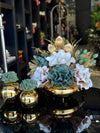 Yapay Çiçekli Gold Yassı Vazo 3 Parça Set No:19