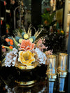 Yapay Çiçekli Gold Yassı Vazo 3 Parça Set No:27