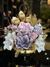Yapay Çiçekli Gold Yassı Vazo No:37