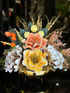 Yapay Çiçekli Gold Yassı Vazo No:40