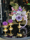 Yapay Çiçekli Gold Yuvarlak Vazo 3 Parça Set No:6