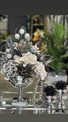 Yapay Çiçekli Gümüş Kare Ayak Vazo 3 Parça Set No:3