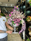 Yapay Çiçekli Kare Ayaklı Vazo 65cm Yüksekliğindedir.