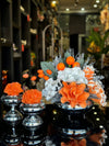 Yapay Çiçekli Gümüş Yassı Vazo 3 Parça Set No:22