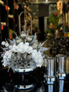 Yapay Çiçekli Gümüş Yassı Vazo 3 Parça Set No:32