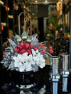 Yapay Çiçekli Gümüş Yassı Vazo 3 Parça Set No:33