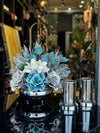 Yapay Çiçekli Gümüş Yassı Vazo 3 Parça Set No:34