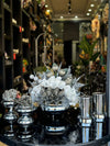 Yapay Çiçekli Gümüş Yassı Vazo 5 Parça Set No:13