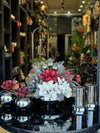Yapay Çiçekli Gümüş Yassı Vazo 5 Parça Set No:14