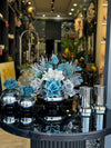 Yapay Çiçekli Gümüş Yassı Vazo 5 Parça Set No:15