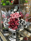 Yapay Çiçekli Gümüş Yassı Vazo No:18