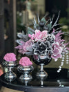 Yapay Çiçekli Gümüş Yuvarlak Vazo 3 Parça Set No:11