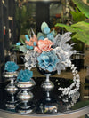 Yapay Çiçekli Gümüş Yuvarlak Vazo 3 Parça Set No:5