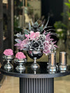 Yapay Çiçekli Gümüş Yuvarlak Vazo 5 Parça Set No:6