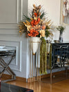 Ev bahçe ve işyeriniz olmak üzere yaşam alanlarınızı renklendirebileceğiniz metal ayaklı,  mermi vazo içerisine ithal yapay çiçek aranjmanını tasarımcılarımız sizler için özenle hazırlanmıştır.
