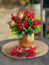 Yapay Kırmızı Kokinalı Dövme Gold Vazo Supla Hediyeli