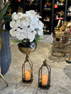 Yapay Orkideli Yer Vazosu+ Fener Set Antik