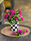 Yapay kokinalı damalı seramik vazo yanında supla hediyesiyle...