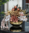 Yapay Sarkıt Çiçekli Gold Yassı Vazo No:1