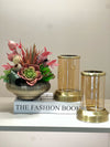 Doğal görünümlü yapay sukulentlerle tamamlanmış, şık çizgili metal vazo; evinize, ofisinize ya da hediye seçimlerinize modern bir hava katacak. Zamansız tasarımı sayesinde her köşeye uyum sağlar, bakım gerektirmeden uzun ömürlü kullanım sunar. Minimalist stilin göz alıcı bir temsilcisi!İKİLİ mumluk ve kitap kutusuyla setinizi tamamlıyoruz
